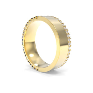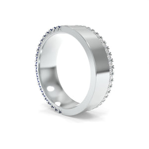 The Reversible Diamond Sapphire Band features french-set half lab grown diamonds and half lab grown blue sapphires and is available in your choice of 18k gold or platinum.