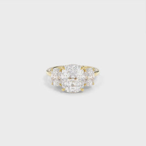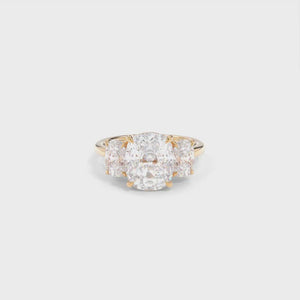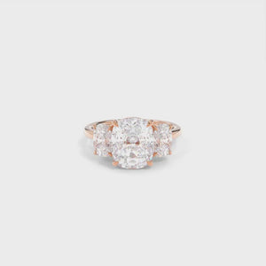 The three-stone setting is a meaningful nod to your past, present, and future. What makes Samantha especially unique is how low it sits to the finger, with three sculpted baskets coming together in a seamless, elegant structure. It's a piece full of symbolism, strength, and subtle detail.