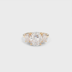 The three-stone setting is a meaningful nod to your past, present, and future. What makes Samantha especially unique is how low it sits to the finger, with three sculpted baskets coming together in a seamless, elegant structure. It's a piece full of symbolism, strength, and subtle detail.