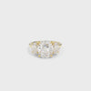 The Samantha Solitaireis named for its solid metal shank, but the name is a bit of a misnomer. This design is actually an iconic three-stone engagement ring. Its side stones are carefully scaled to closely mirror the shape and size of the center stone, creating a balanced and intentional look that stands on its own.