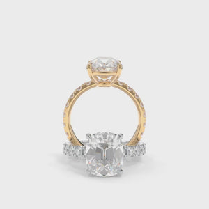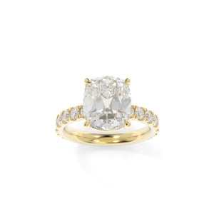 Renders depicting an 10x8.5mm Old Mine Cushion center stone.