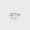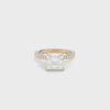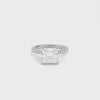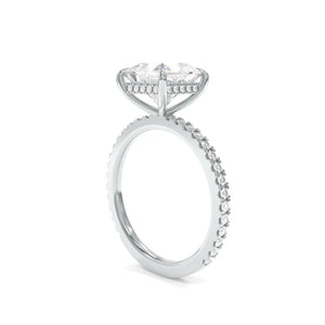 The Taylor Ring is crafted with your selection of a moissanite or a lab grown diamond center stone and features round lab grown diamond accents. This ring is available in your choice of 18k gold or platinum.