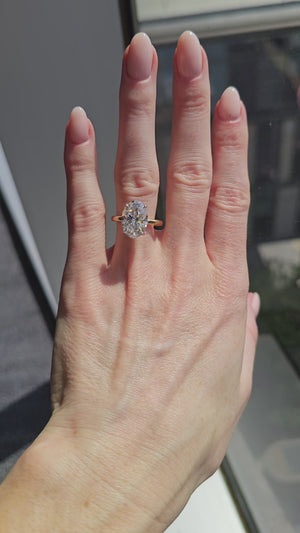 This Taylor Solitaire is finished in Recycled Platinum & 18k Champagne Gold, showcasing a breathtaking 5.04ct D VS1 Oval Lab Grown Diamond, personally curated by True Gem founder Lynne Armstrong.