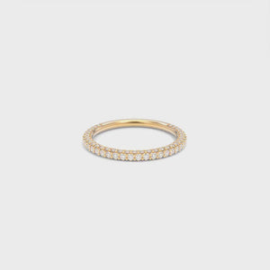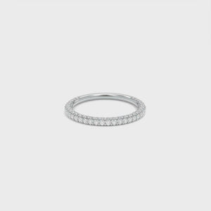 The Vanessa Pavé Diamond Wedding Band features three rows of rolled pavé round lab grown diamonds and is available in your choice of 18k gold or platinum.